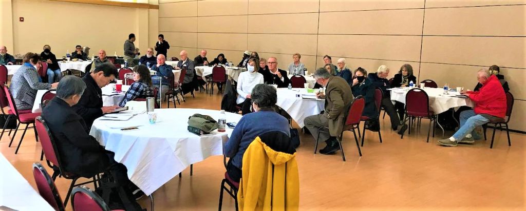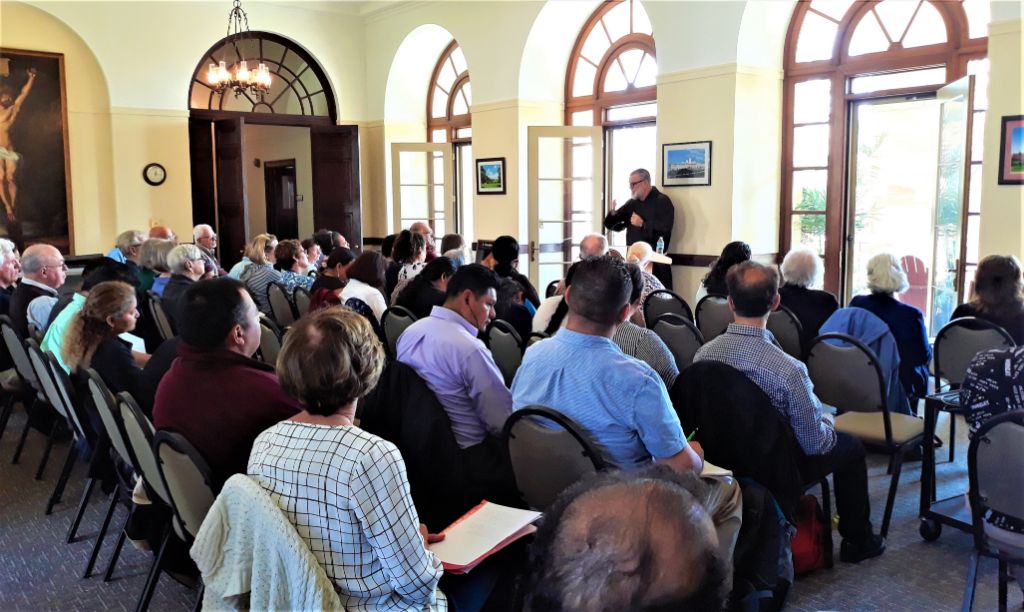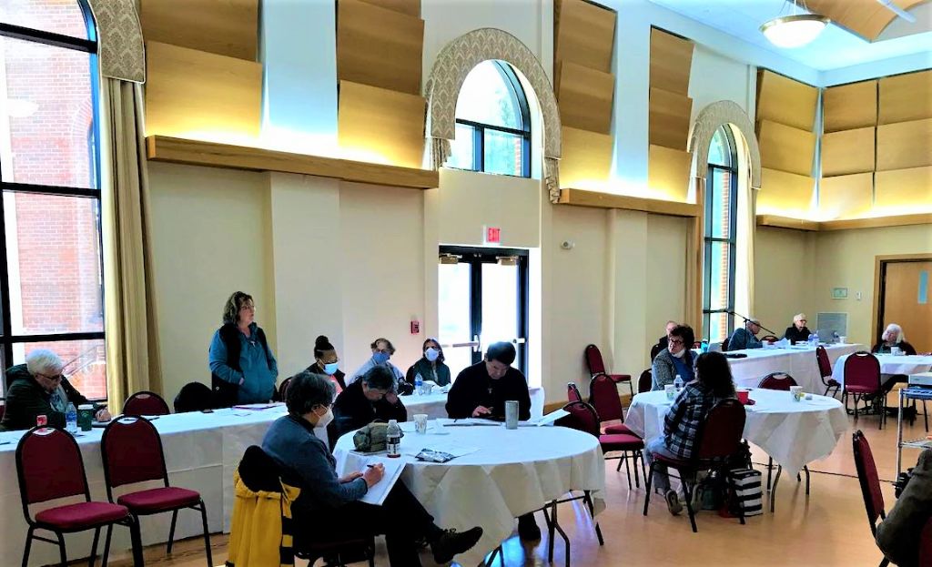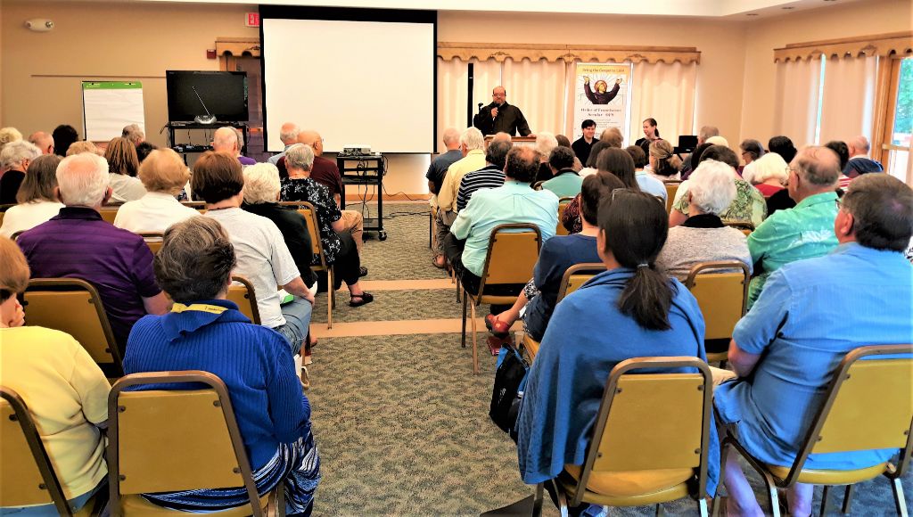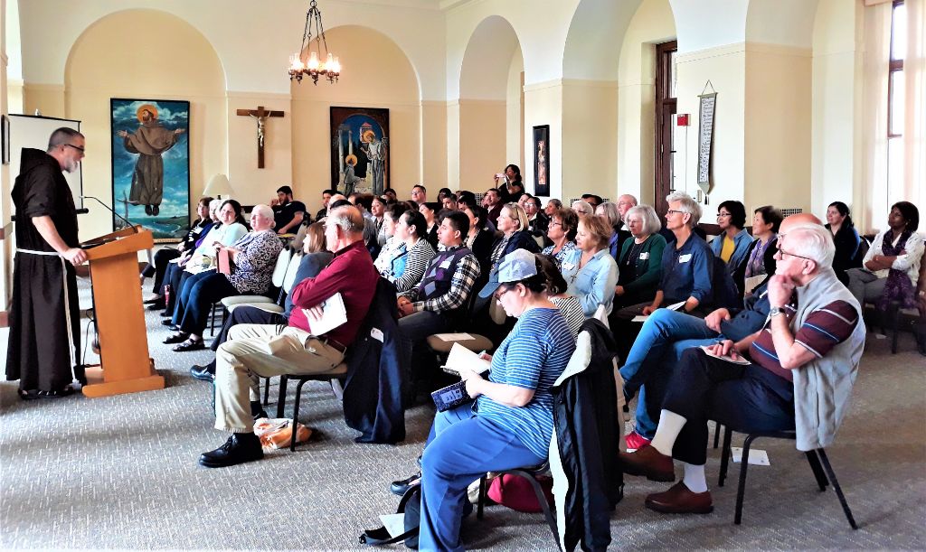 Br. Michael led the retreatants through a unified series of talks interspersed with group liturgies, sharing at meals and social hours, and time for personal reflection. He called upon the Secular Franciscans of the region to deepen their communion with the Lord, Jesus Christ. He pointed out that in Confirmation they received the gifts of the Holy Spirit to strengthen them, and that they are people of faith, called to constant conversion. “We must have the conviction of St. Francis that we are people of faith, called to be part of the Church’s mission to bring God everywhere.” He cited Article 6 of the Secular Franciscan rule, urging us to “go forth as witnesses and instruments of the Church’s mission among people,“ and that, “Secular Franciscans proclaim Christ by their lives and words.”