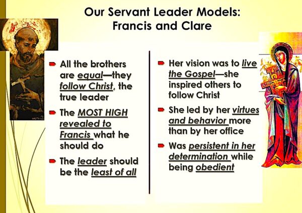 The Handbook for Servant Leadership, published by OFS-USA in 2010, contains a wealth of information that can guide us in being or becoming excellent servant leaders. This week we are inspired by our models: Jesus, Francis and Clare. (See Handbook for Secular Franciscan Servant Leadership pp. 4-7)