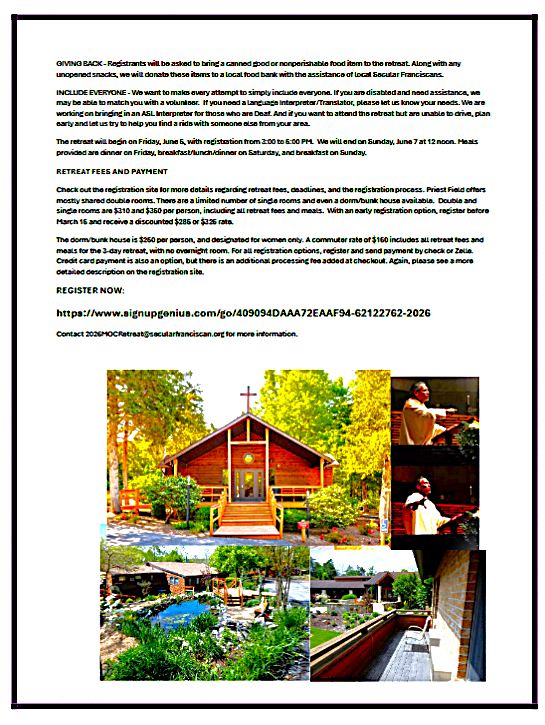 We hope to see you there. For more details and registration, Please visit 21st Congress Secular Franciscan Order – USA.